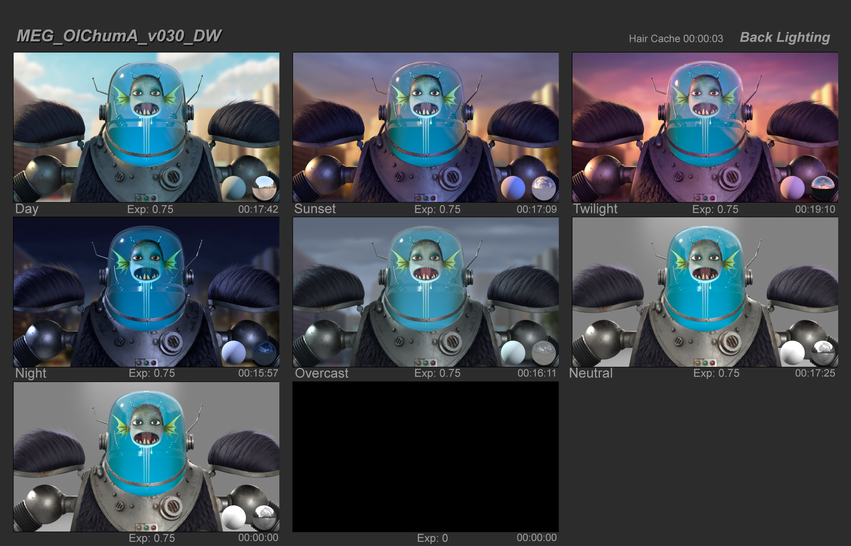 Overall, my responsibilities included setting up the master light rig for both characters, creating lighting presets for seven different times of day, and developing comprehensive composite set-ups. This meticulous approach ensured that my work not only met but set the standard for the entire show.